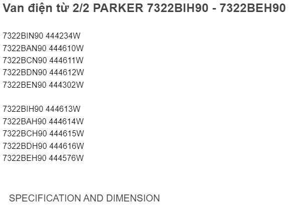 Van điện từ 2/2 PARKER: 7322BIH90 ~ 7322BEH90