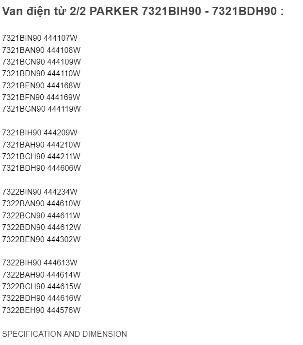 Van điện từ 2/2 PARKER: 7321BIH90 ~ 7321BDH90