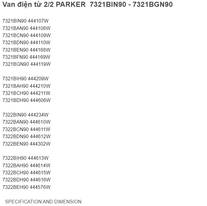 Van điện từ 2/2 PARKER: 7321BIN90 ~ 7321BGN90