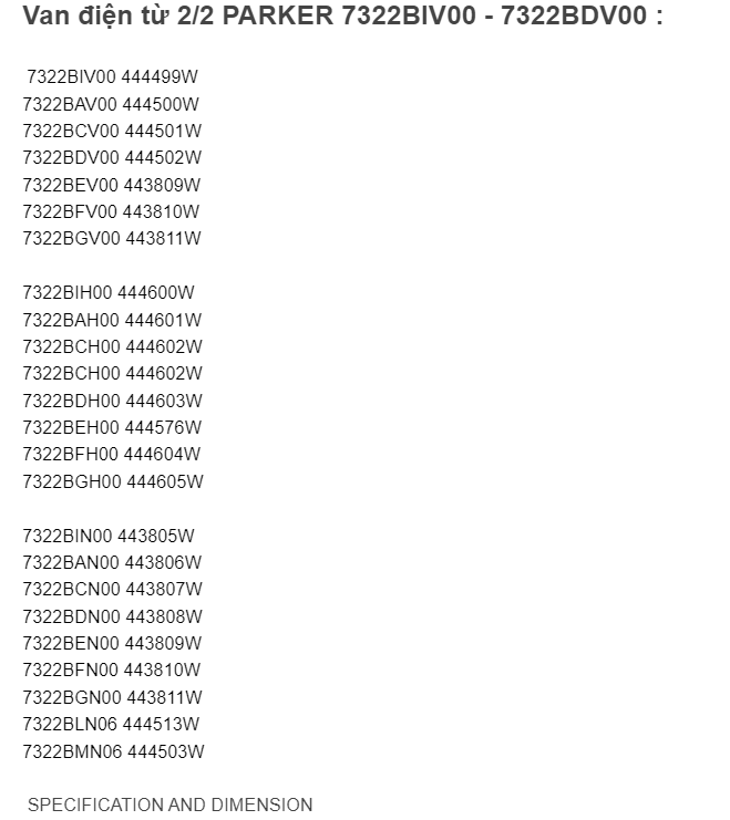 Van điện từ 2/2 PARKER: 7322BIV00 ~ 7322BDV00