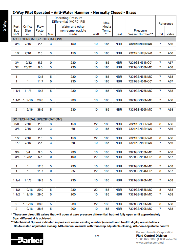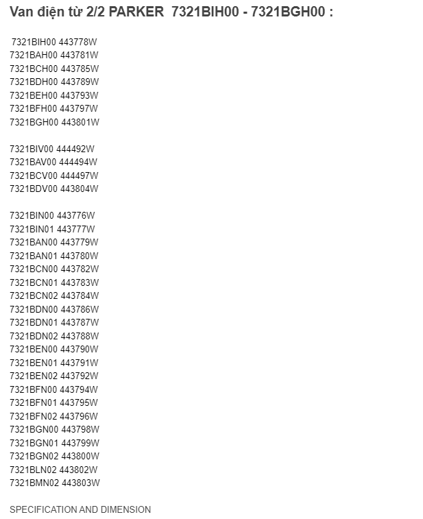 Van điện từ 2/2 PARKER : 7321BIH00 ~ 7321BGH00