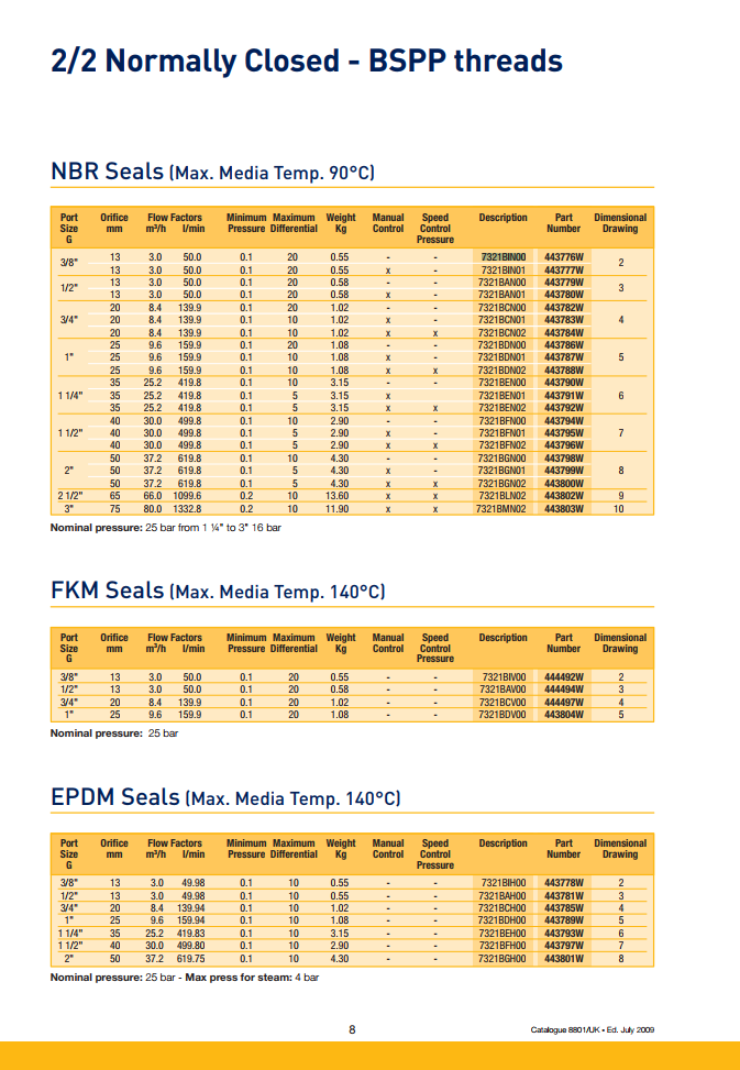 Van điện từ 2/2 PARKER: 7321BIN00 ~ 7321BMN02