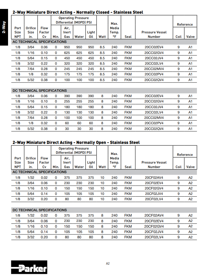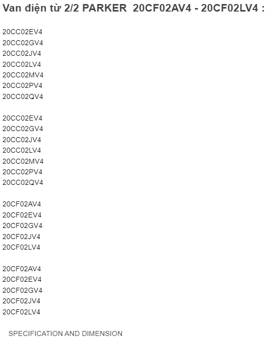 Van điện từ 2/2 PARKER: 20CF02AV4 ~ 20CF02LV4