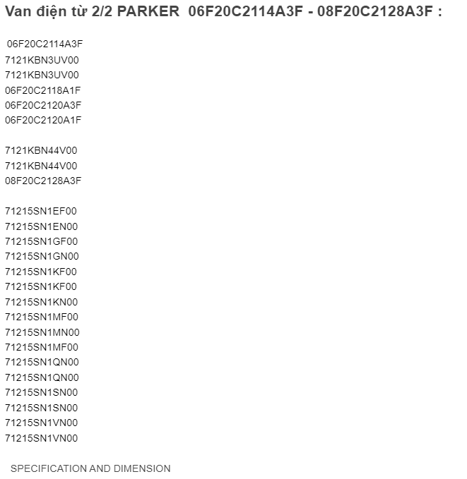 Van điện từ 2/2 PARKER: 06F20C2114A3F ~ 08F20C2128A3F
