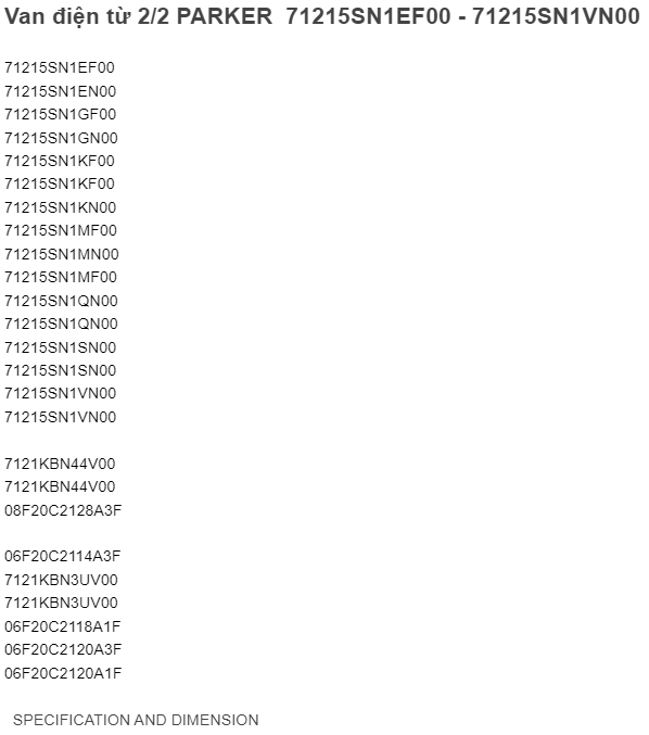 Van điện từ 2/2 PARKER: 71215SN1EF00 ~ 71215SN1VN00