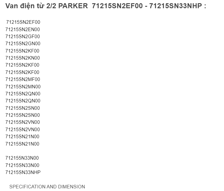 Van điện từ 2/2 PARKER: 71215SN2EF00 ~ 71215SN33NHP