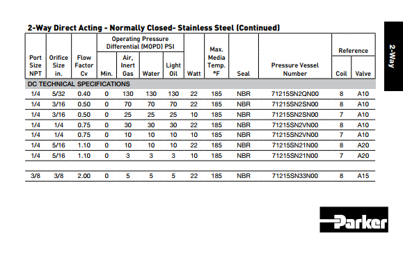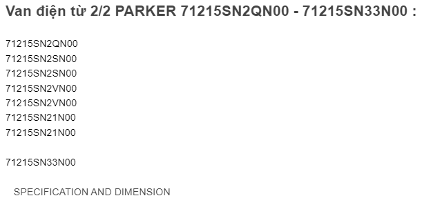 Van điện từ 2/2 PARKER: 71215SN2QN00 ~ 71215SN33N00