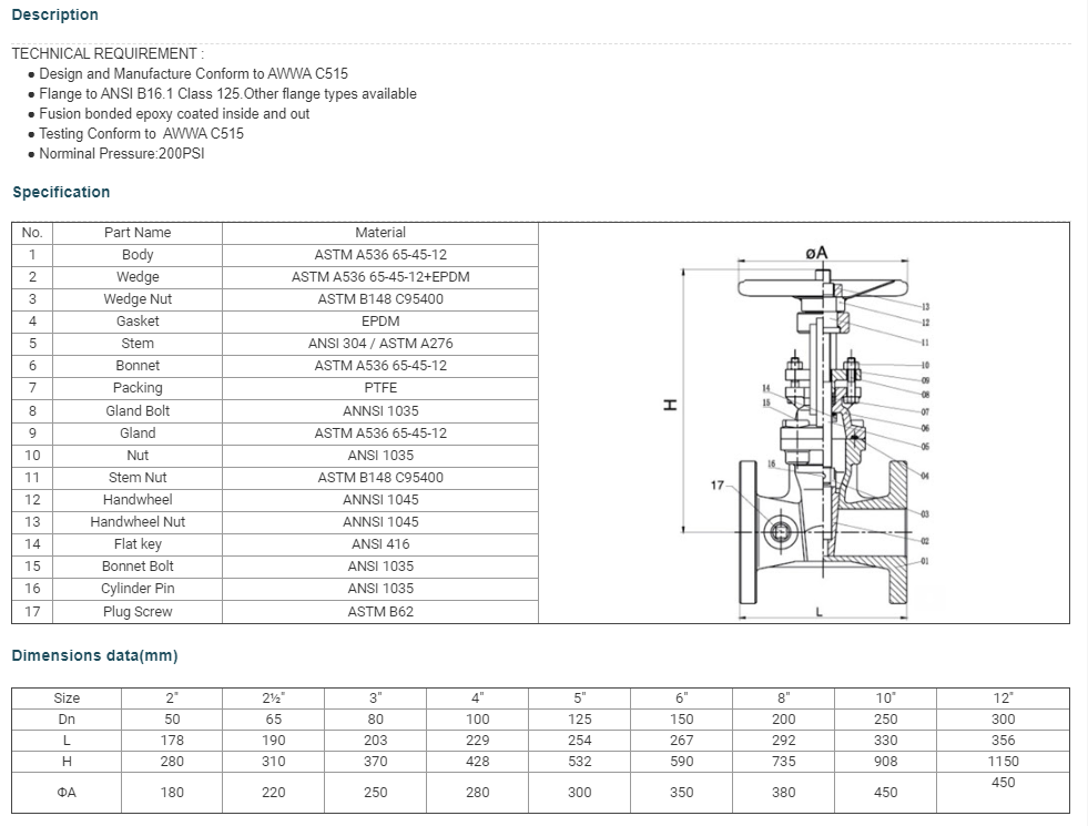 Van phòng cháy chữa cháy : Type Flanged End Gate Valve
