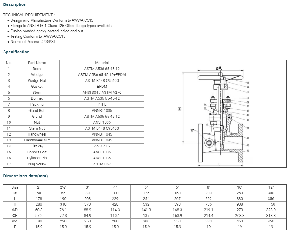 Van phòng cháy chữa cháy : 200PSI-NRS Type Flanged End Gate Valve