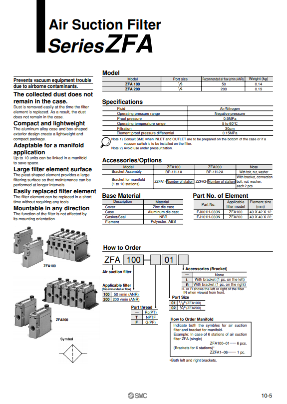 Vacuum suction filter SMC : ZFA100 , ZFA200