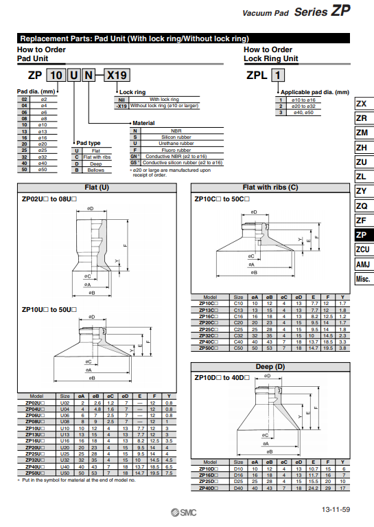 Vacuum pad SMC : ZP2-T3507WN- ... ZP2-T5020WN-...