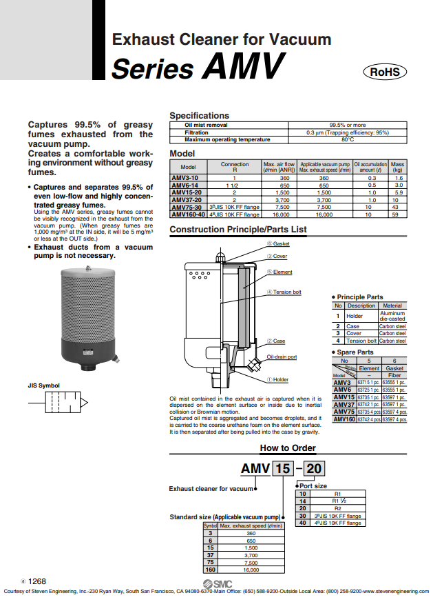 Exhaust Cleaner For Vacuum SMC : AMV3-10 ... AMV3160-40