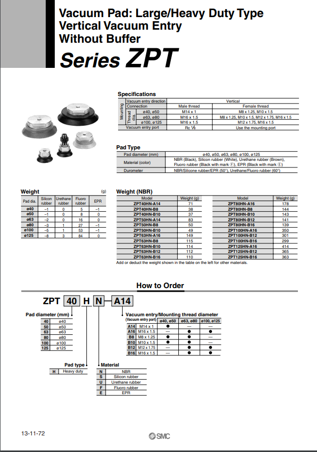 Vacuum pad SMC : ZP2-T3507WN- ... ZP2-T5020WN-...