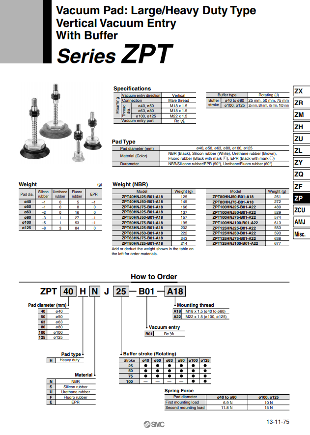 Vacuum Pad SMC : ZPT40HFJ25 ... ZPT125HFJ100