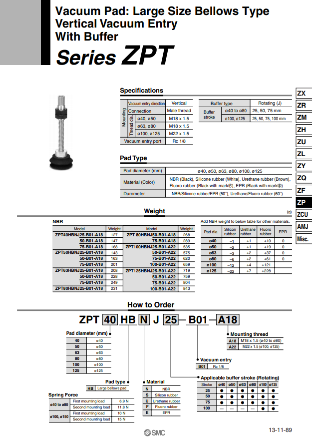 Vacuum Pad SMC : ZPT40HBNJ25-B01A18 ... ZPT40HBNJ75-B01A18