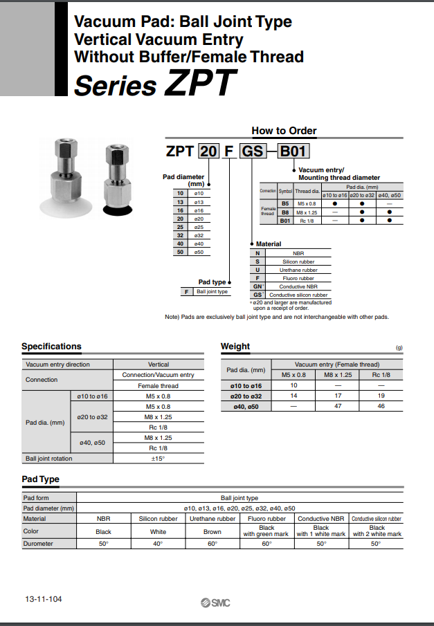 Vacuum pad SMC : ZP2-TB04MBN- .... ZP2-TB20MBN-...