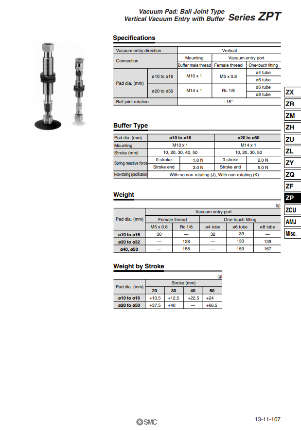 Vacuum pad SMC : ZP3P-T20PTSFJ10- ... ZP3P-T50PTSFJ20-...