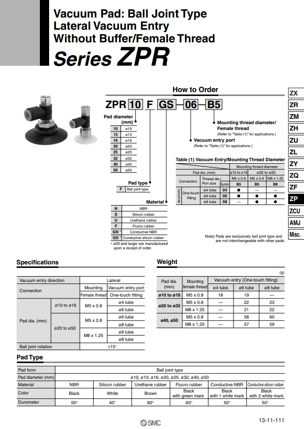 Vacuum Pad Ball Jioint SMC :ZPR10FU ... ZPR50FU