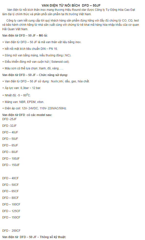 Van điện từ nối bích DFD-50JF Hiệu Round-Star