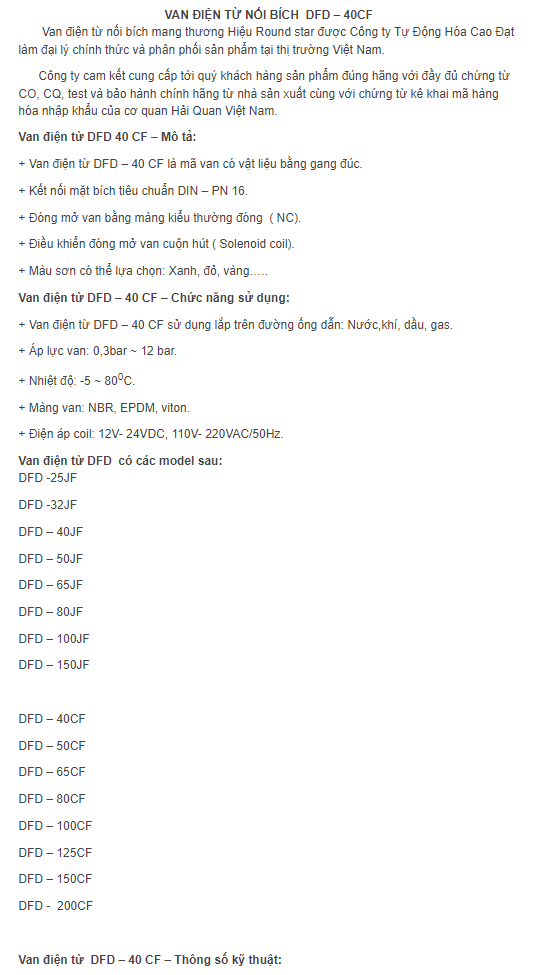 Van điện từ nối bích DFD-40CF Hiệu Round-Star
