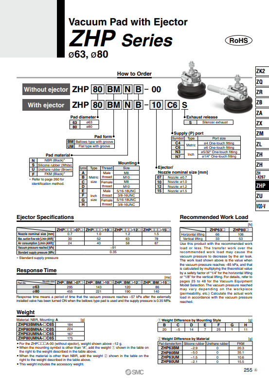 Vacuum pad ejctor SMC : ZHP-63BMNB ... ZHP-80BMNB..