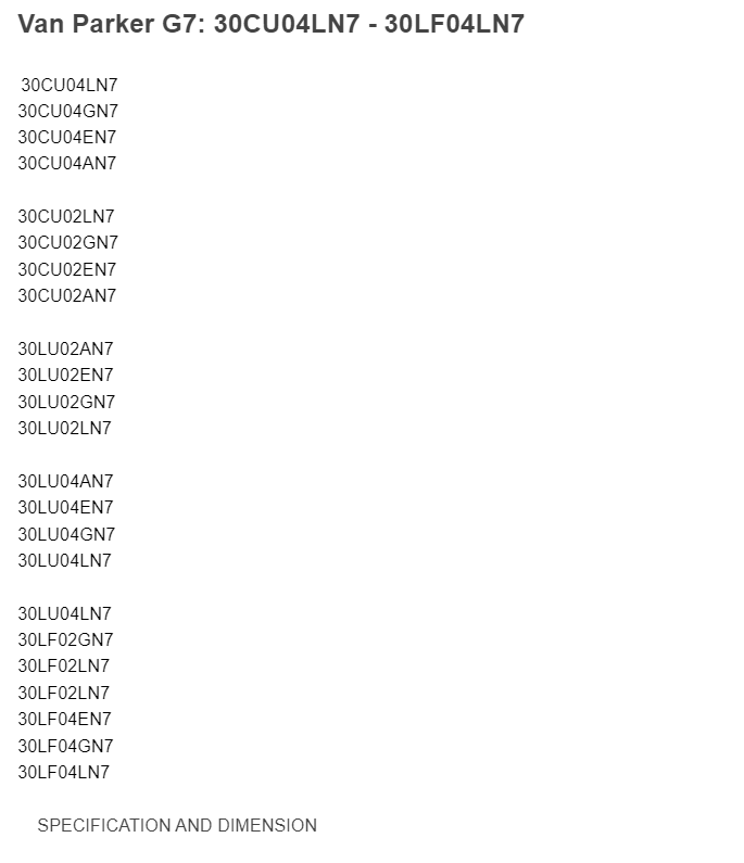 Van Parker G7: 30LC02EN7 ~ 30LC04PN7