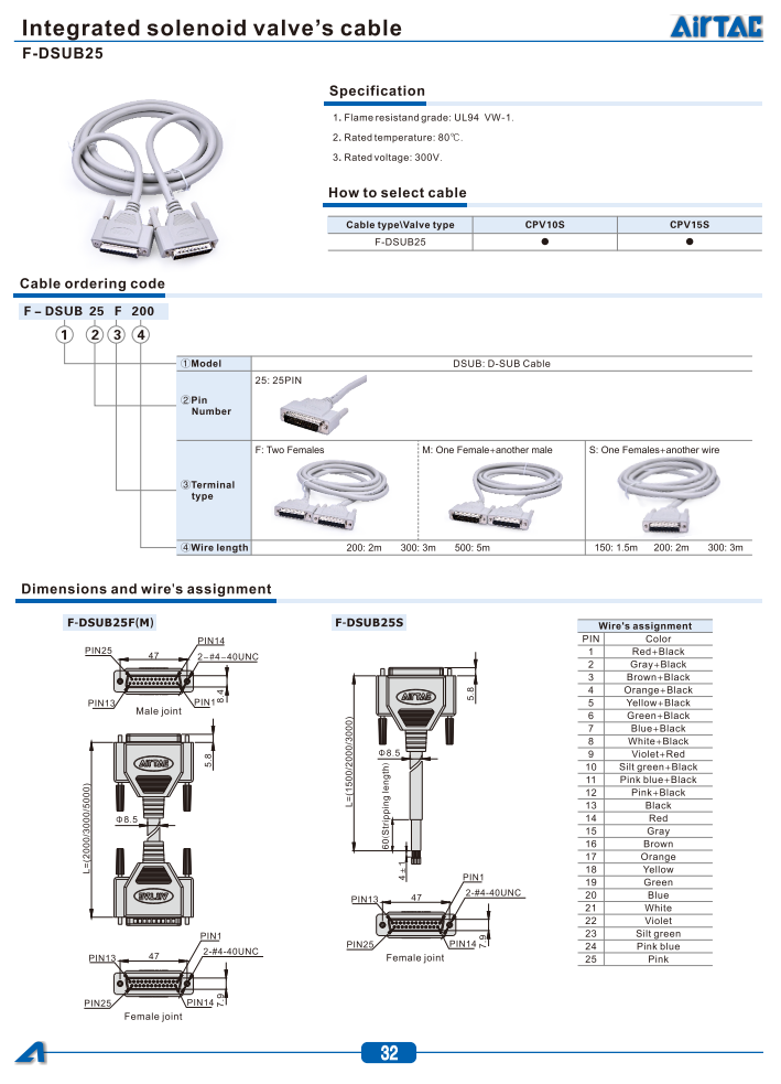 Dây kết nối cho van Airtac - Series: F-DSUB25 ~ F-DSUB37