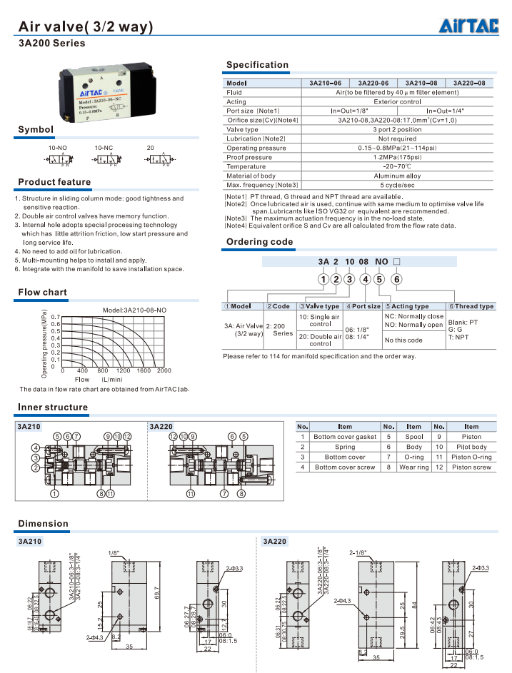 Van điện từ Airtac - Series: 3A210-06 ~3A220-08