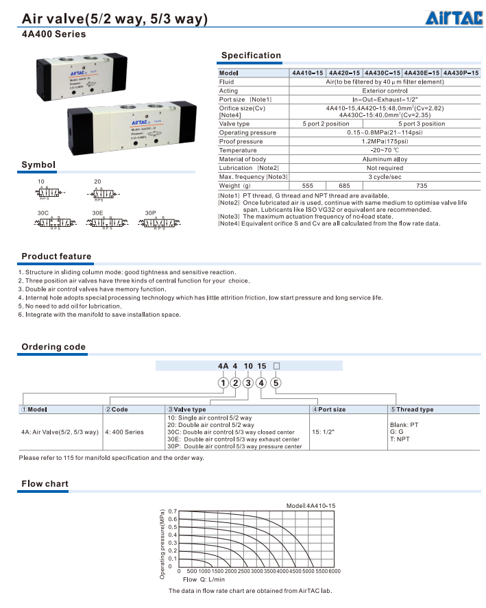 Van điện từ Airtac - Series: 4A410-15 ~4A430P-15