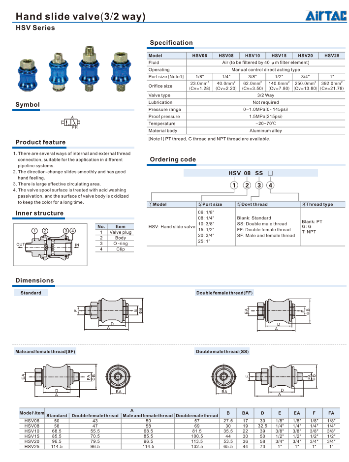 Van tay gạt Airtac - Series: HSV06 ~ HSV25