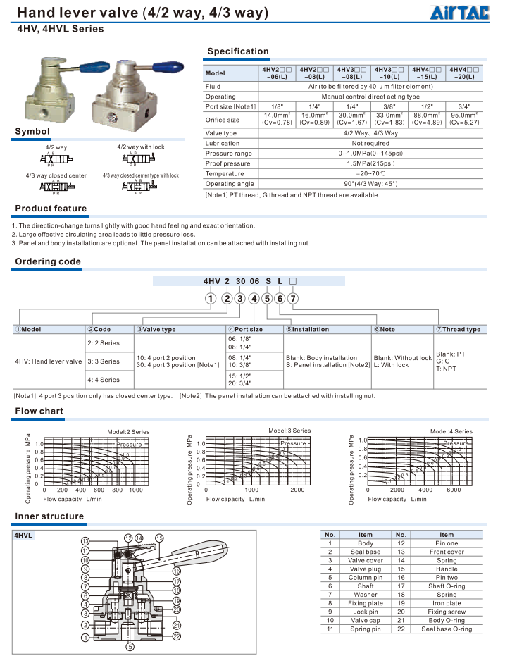 Van tay gạt Airtac - Series: 4HV2-06 ~ 4HV4-15