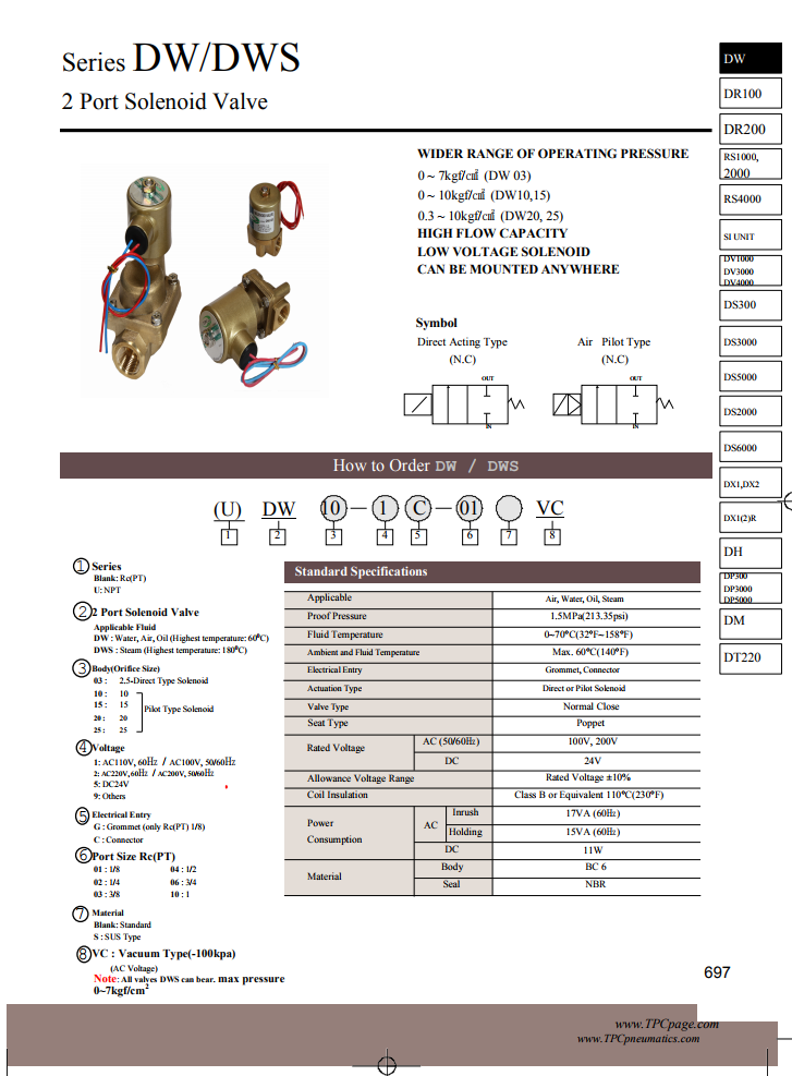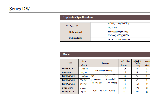 Van điện từ DW 50 – TPC – Thông số kỹ thuật: