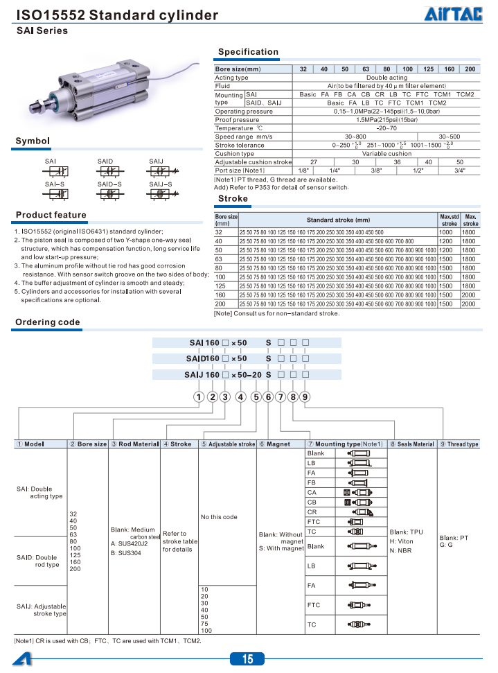 Xi lanh khí nén Airtac - Series: SAI, SAID, SAIJ, SAIL, SAIF