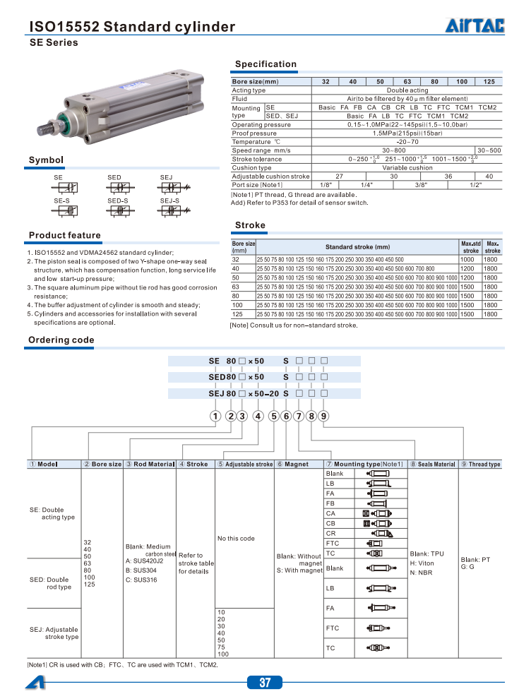 Xi lanh khí nén Airtac - Series: SE, SED, SEJ
