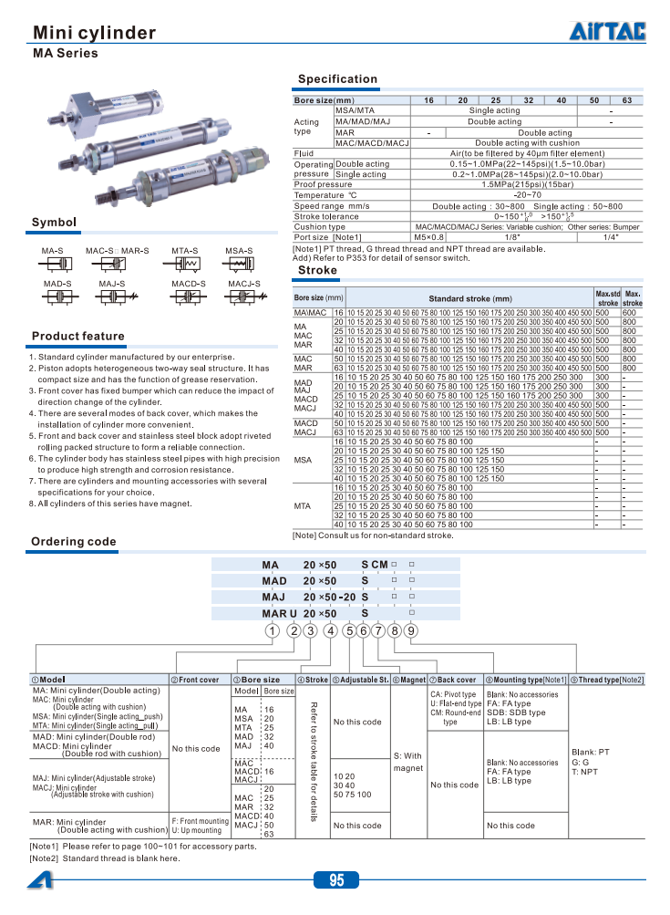Xi lanh khí nén Airtac - Series: MA-S , MAC-S , MAR-S , MTA-S MSA-S