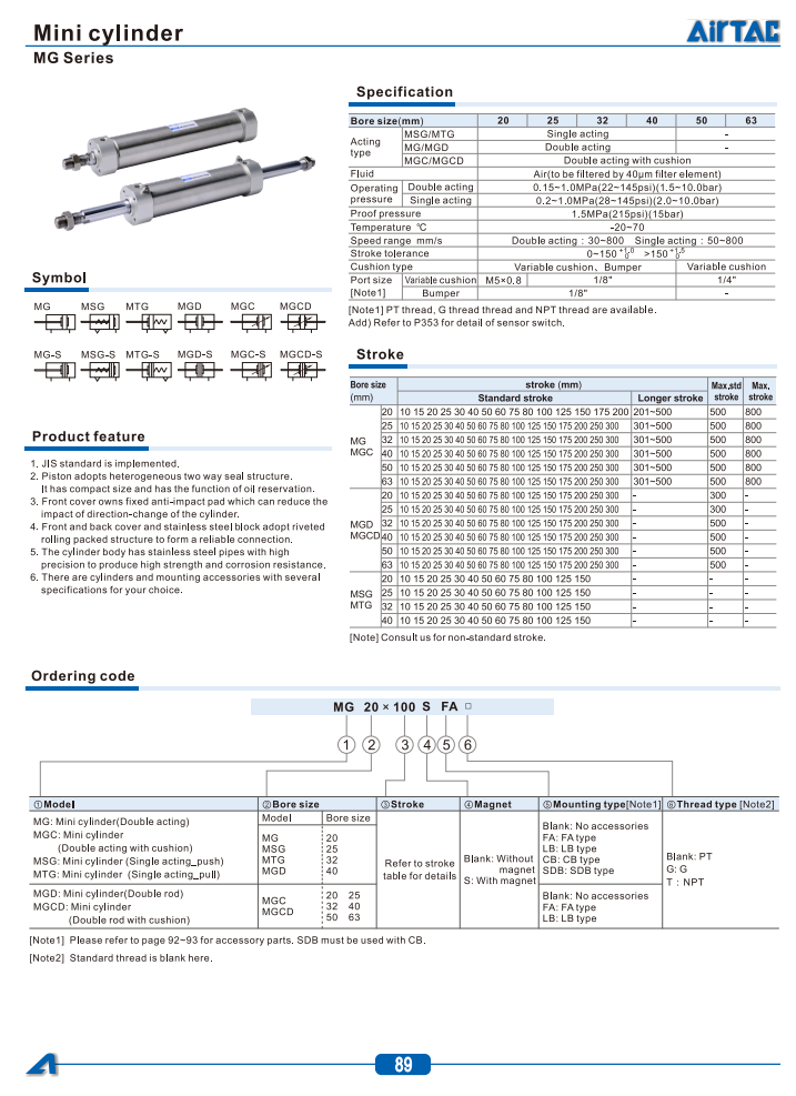 Xi lanh khí nén Airtac - Series: MG-MSG - MTG - MGD - MGC - MGCD