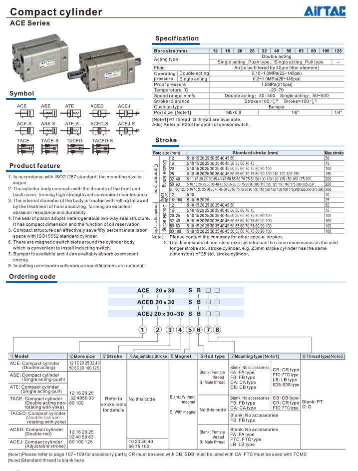 Xi lanh khí nén Airtac - Series: ACE-ASE - ATE - ACED - ACEJ