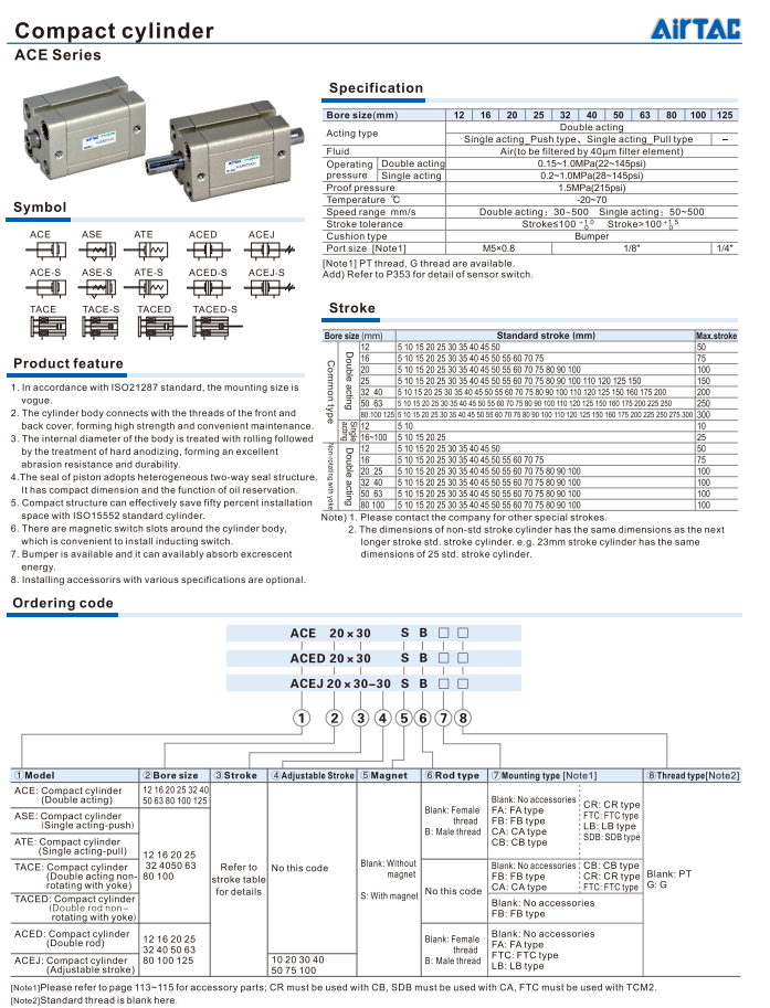 Xi lanh khí nén Airtac - Series:TACE , TACE-S , TACED , TACED-S