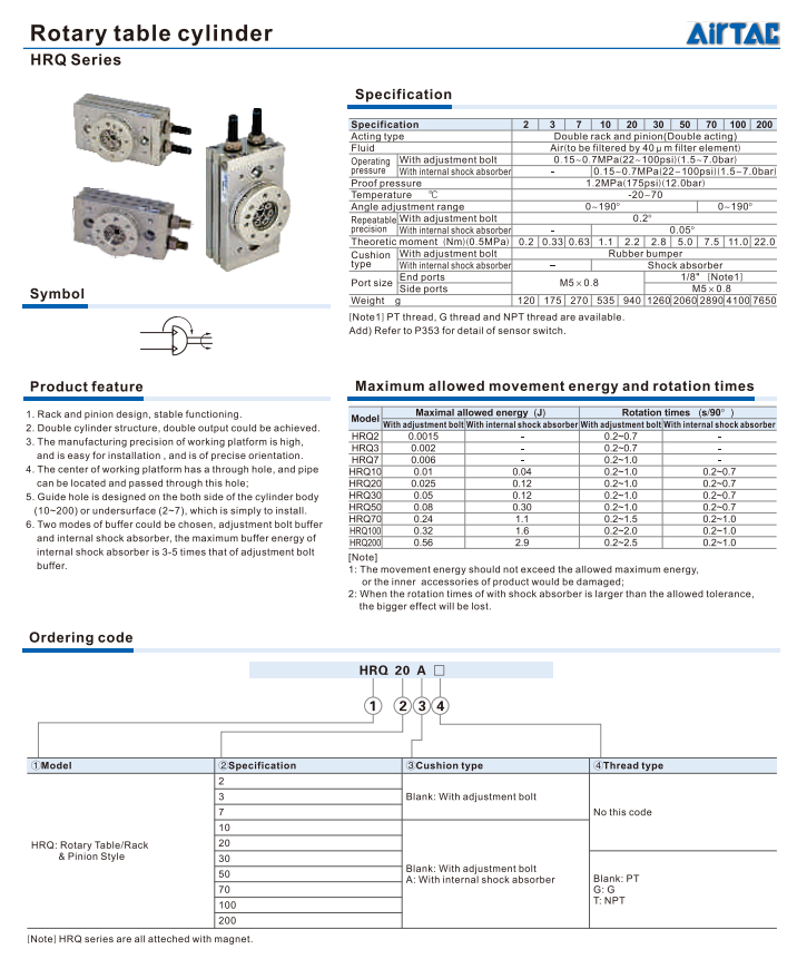 Xi lanh xoay Airtac - Series: HRQ