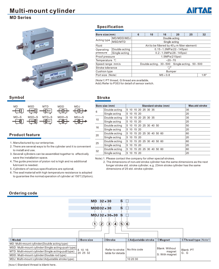 Xi lanh khí nén Airtac - Series: MD-MSD - MTD - MDD - MDJ