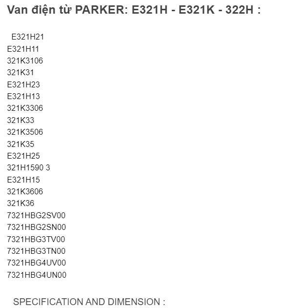 Van điện từ PARKER: E321H ~ E321K ~ 322H