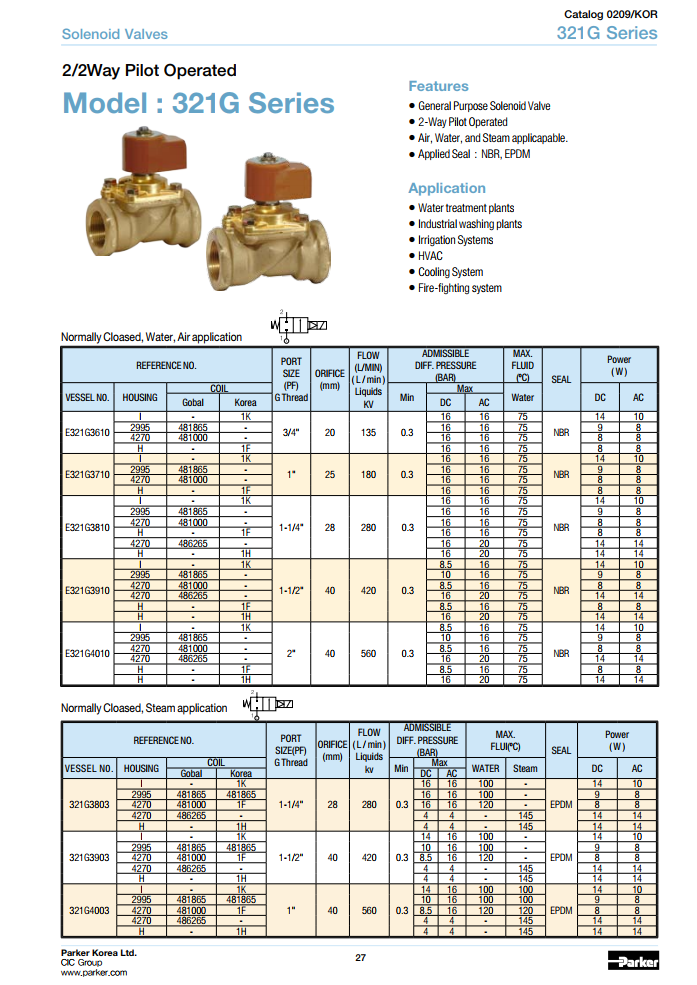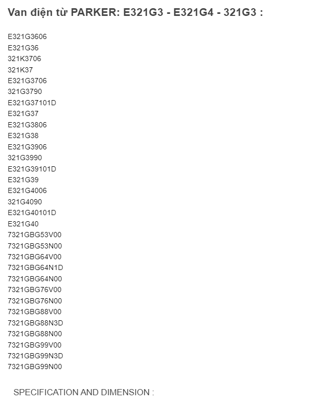 Van điện từ PARKER: E321G3 ~ E321G4 ~ 321G3