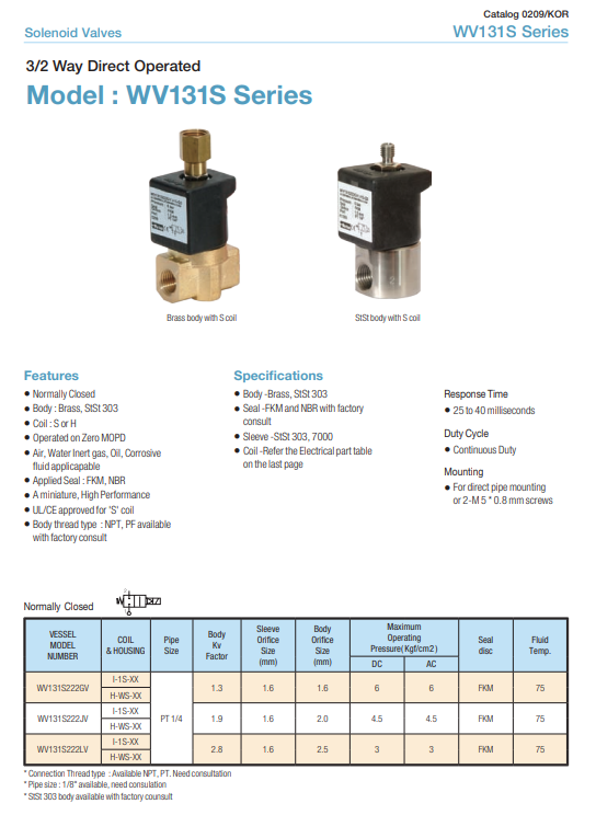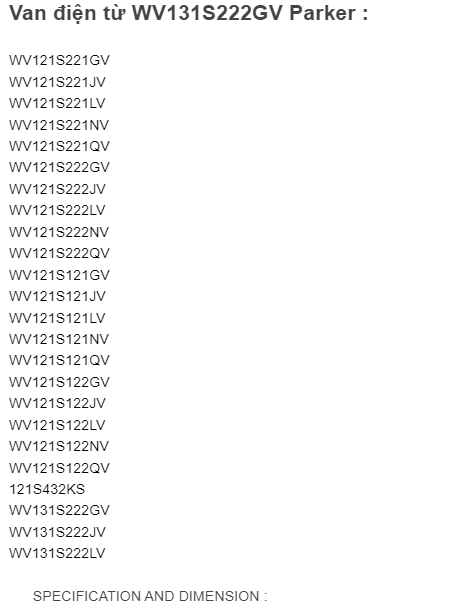 Van điện từ WV131S222GV Parker