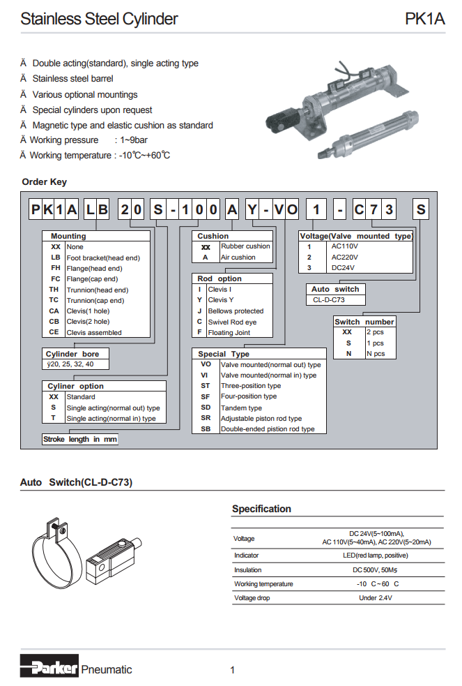 Công ty Tự Động Hóa Cao Đạt xin giới thiệu tới quý khách hàng xi lanh khí nén Model PK1A – 40 Hiệu Parker.