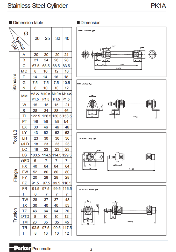 Model: PK1A -40 là xi lanh tròn vỏ thân là inox.