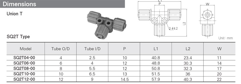 Đầu nối khí SQ2T - Thông số kỹ thuật: