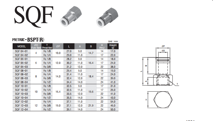 Đầu nối SQF 08 - 01S ( Ø8 - 1/8’’)
