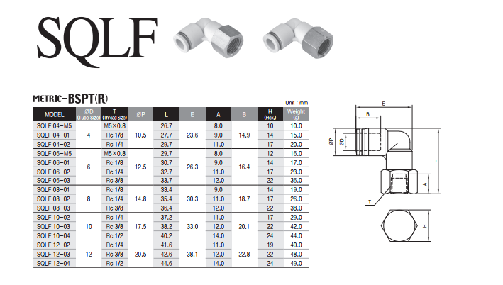 Đầu nối SQLF 10 - 01S (Ø10 - 1/8’’)