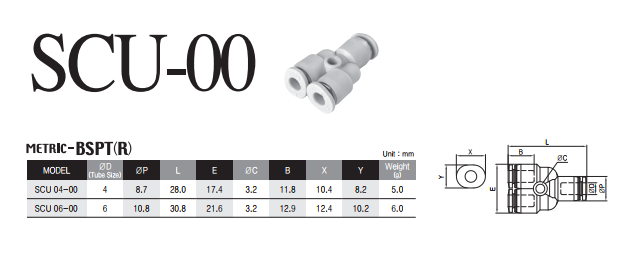 Đầu nối SCU -00 có kiểu dáng compact nhỏ gọn thao tác nhanh dễ dàng cắm ống cũng như tháo ống.