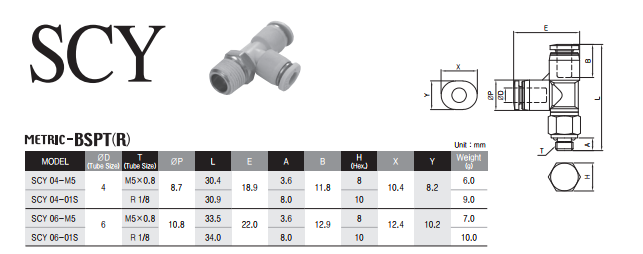 Đầu nối SCY có kiểu dáng compact nhỏ gọn thao tác nhanh dễ dàng cắm ống cũng như tháo ống.